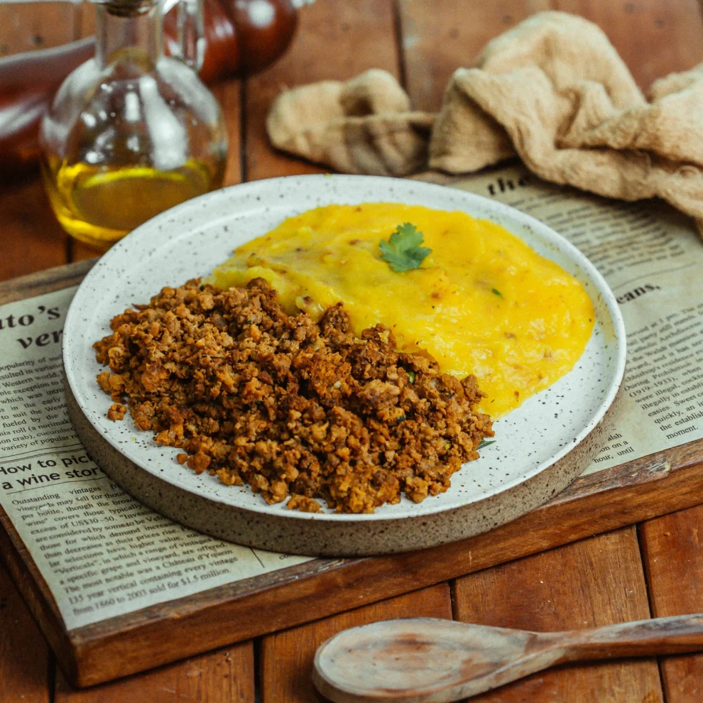 4un Carne de Patinho Moído com Purê de Mandioquinha: Experimente a suculência da carne de patinho moído, delicadamente combinada com o purê cremoso de mandioquinha. Uma opção que une a rusticidade da carne com a suavidade do purê, proporcionando uma experiência gastronômica única e nutritiva. 300g – 362kcal