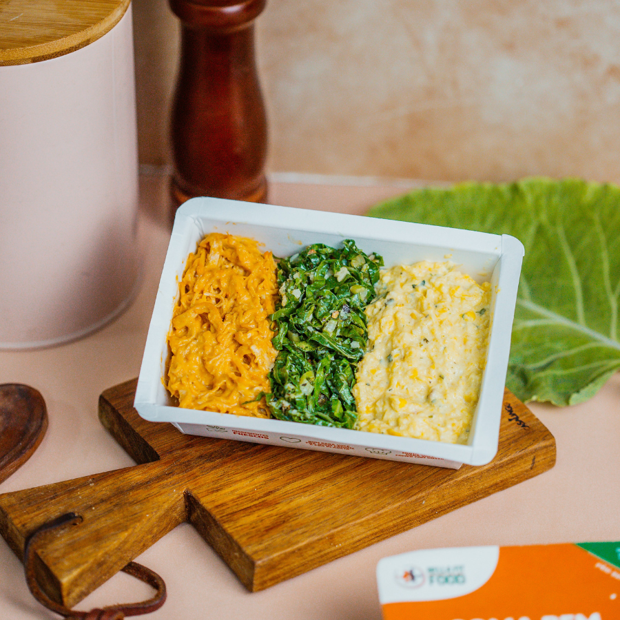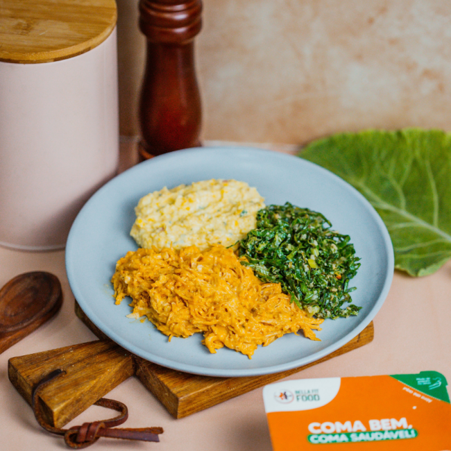 4 un. Frango desfiado ao requeijão com couve refogada e creme de milho 240kcal