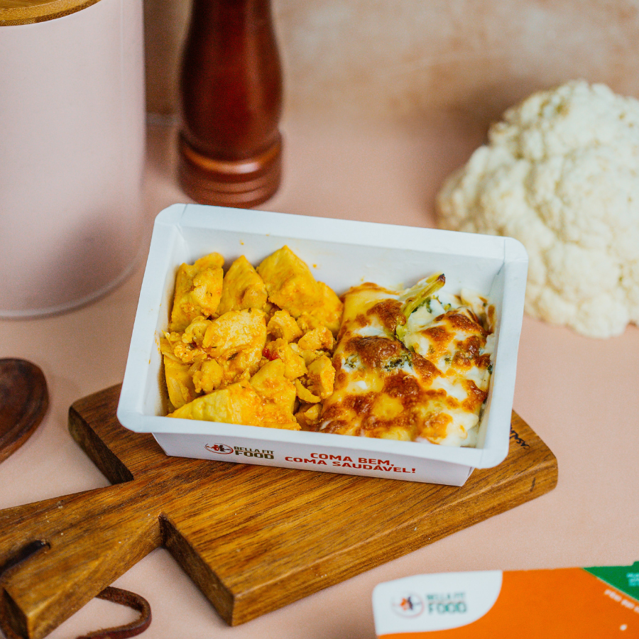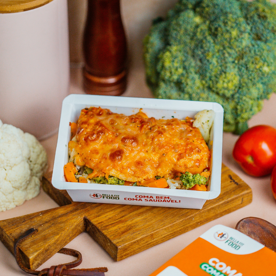 4 un. Parmegiana de frango com mix de legumes (cenoura, brócolis e couve-flor) 240kcal