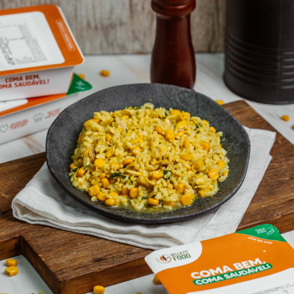 12 un. Galinhada Fit (sobrecoxa desfiada + arroz integral + milho) 460kcal
