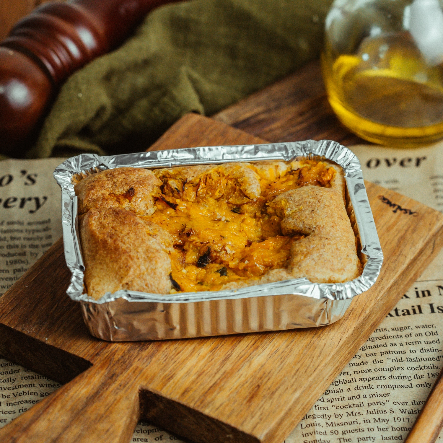 Abóbora com Carne Seca: Uma torta que equilibra a doçura da abóbora com a intensidade da carne seca, resultando em uma combinação que surpreende o paladar. Cada porção é uma jornada de sabores e texturas. 206Kcal