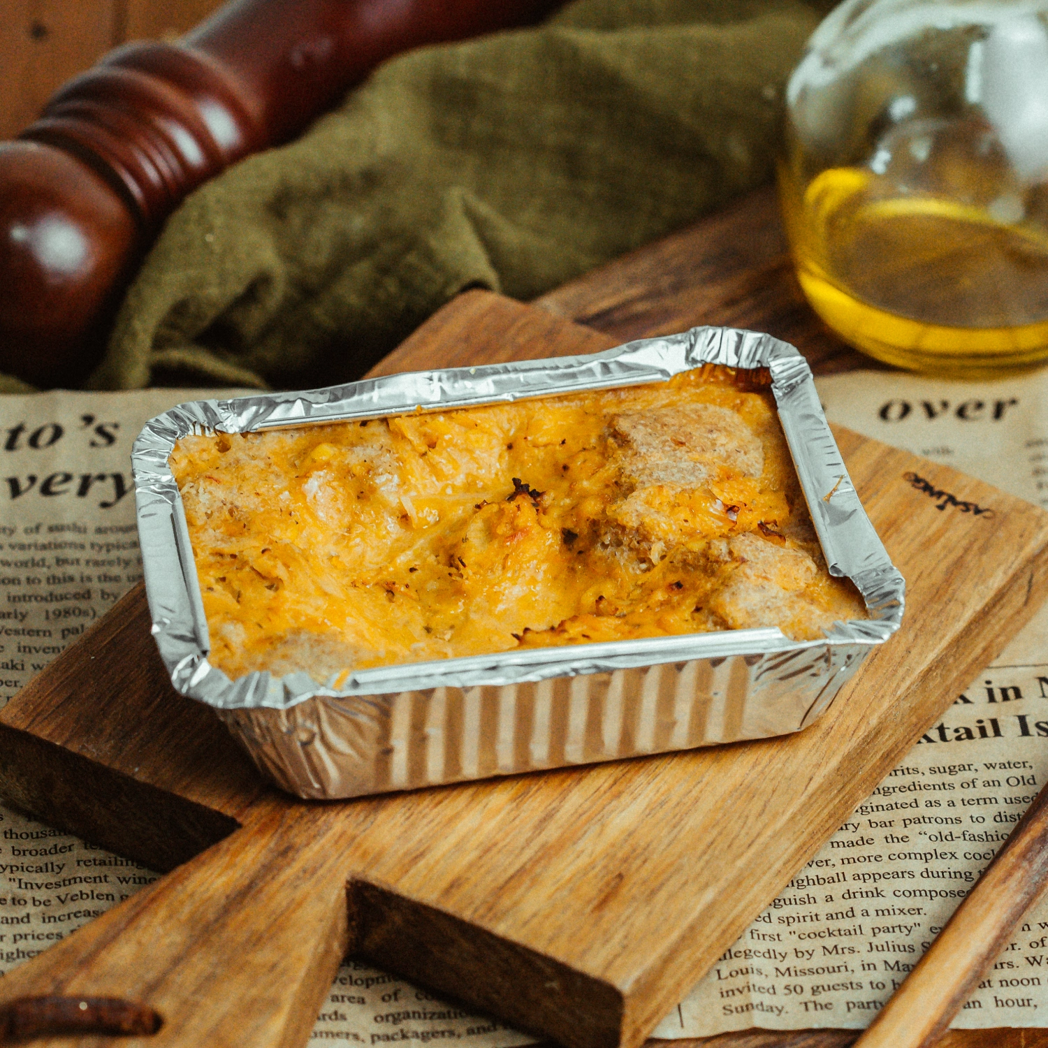 Frango Cremoso com Milho e Requeijão: Delicie-se com a cremosidade do frango combinada com a doçura natural do milho, finalizada pelo toque irresistível do requeijão. Uma torta que proporciona uma explosão de sabores em cada mordida. 246Kcal