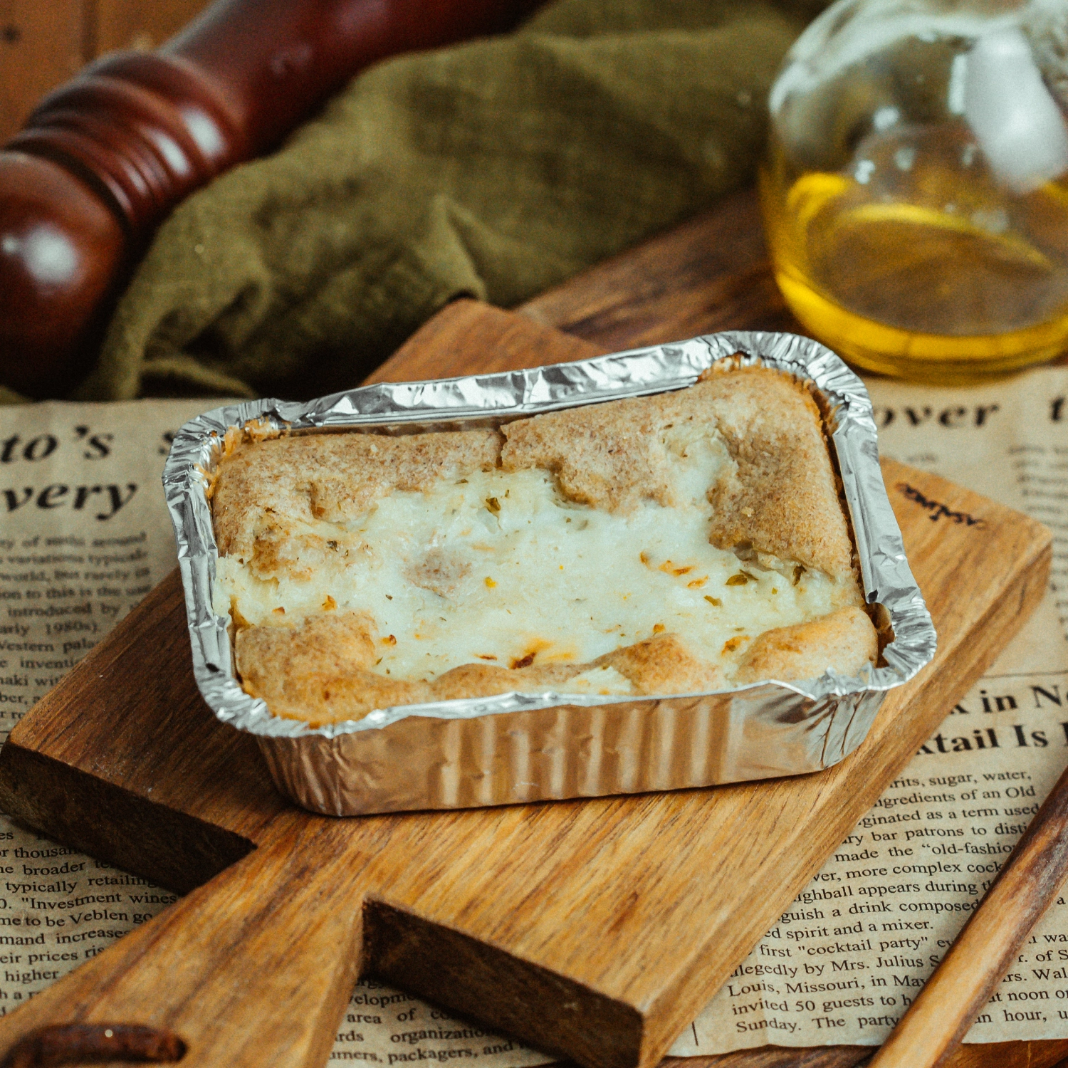 Alho-Poró com Queijo Branco: Uma opção leve e marcante, onde o sabor característico do alho-poró se combina com a suavidade do queijo branco. Uma torta que oferece uma experiência única de sabor e leveza. 124Kcal
