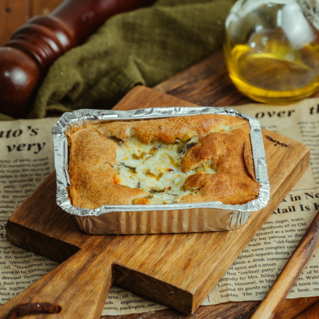 Ingredientes: Alho-poró, queijo branco, farinha de trigo integral, leite desnatado, amido de milho, margarina light, ovos, óleo de canola, sal rosa, salsinha e fermento em pó.